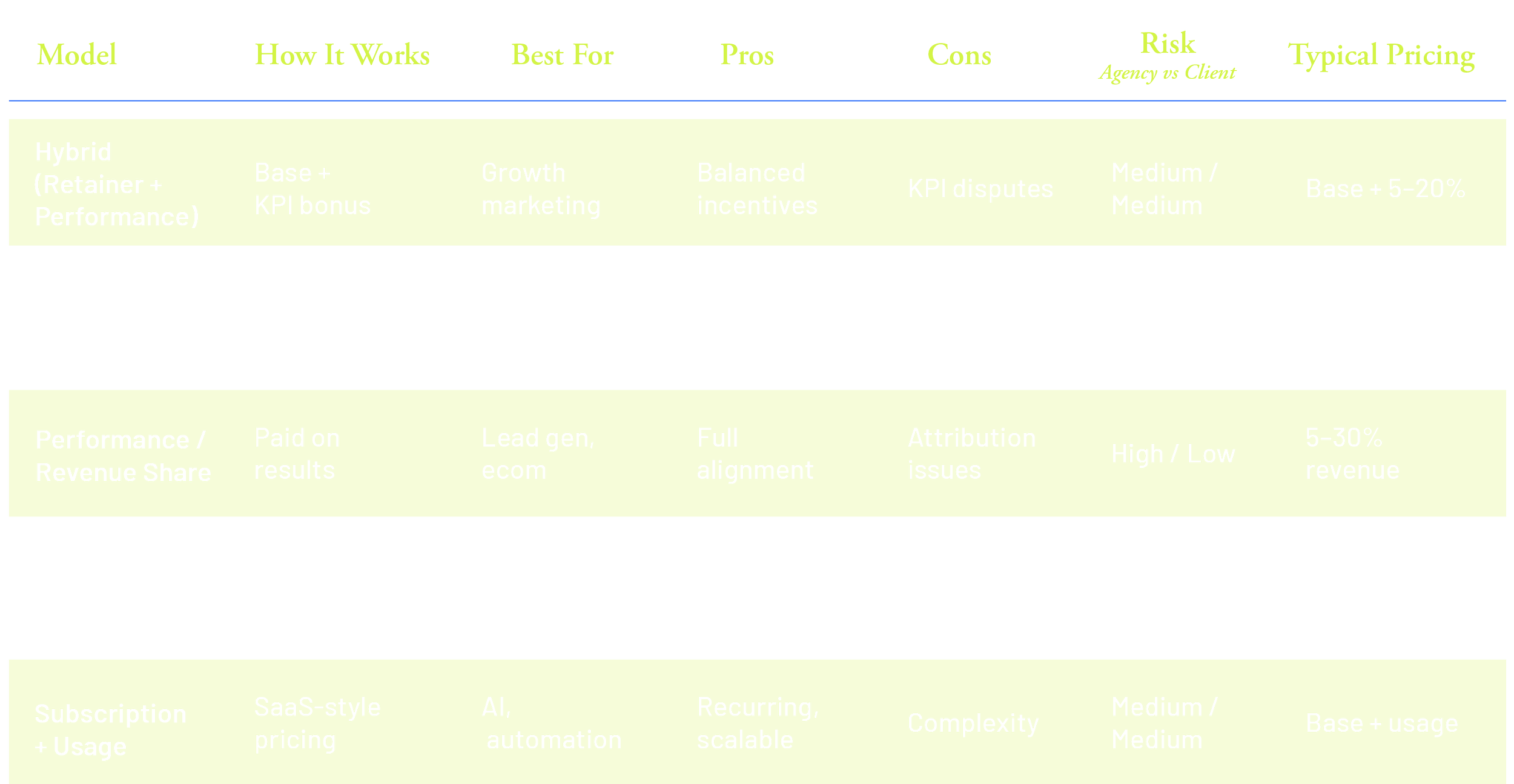 The new generation of agency models centers on one idea: Compensation should reflect impact—not effort.