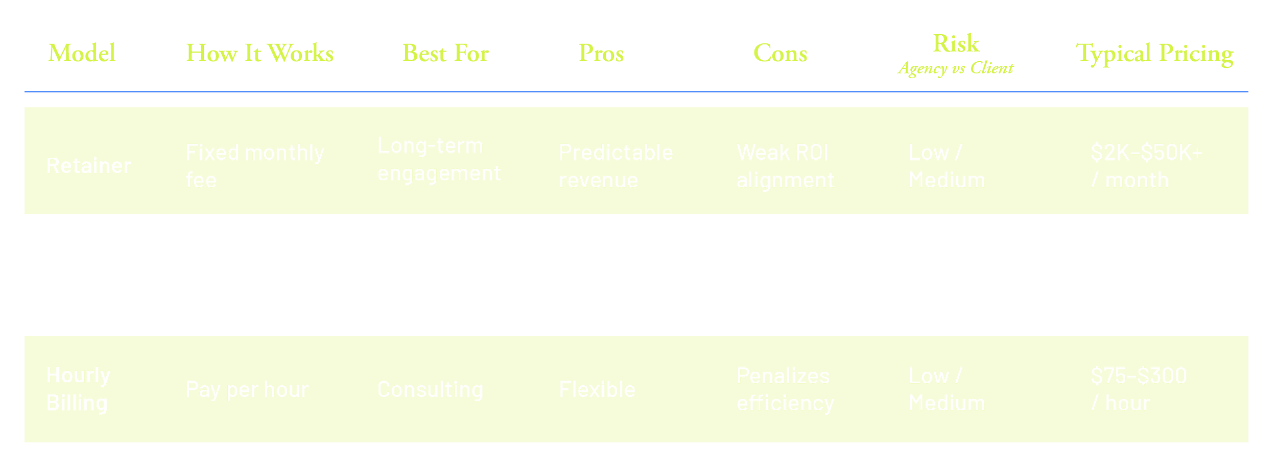 Base retainer → covers team + baseline delivery