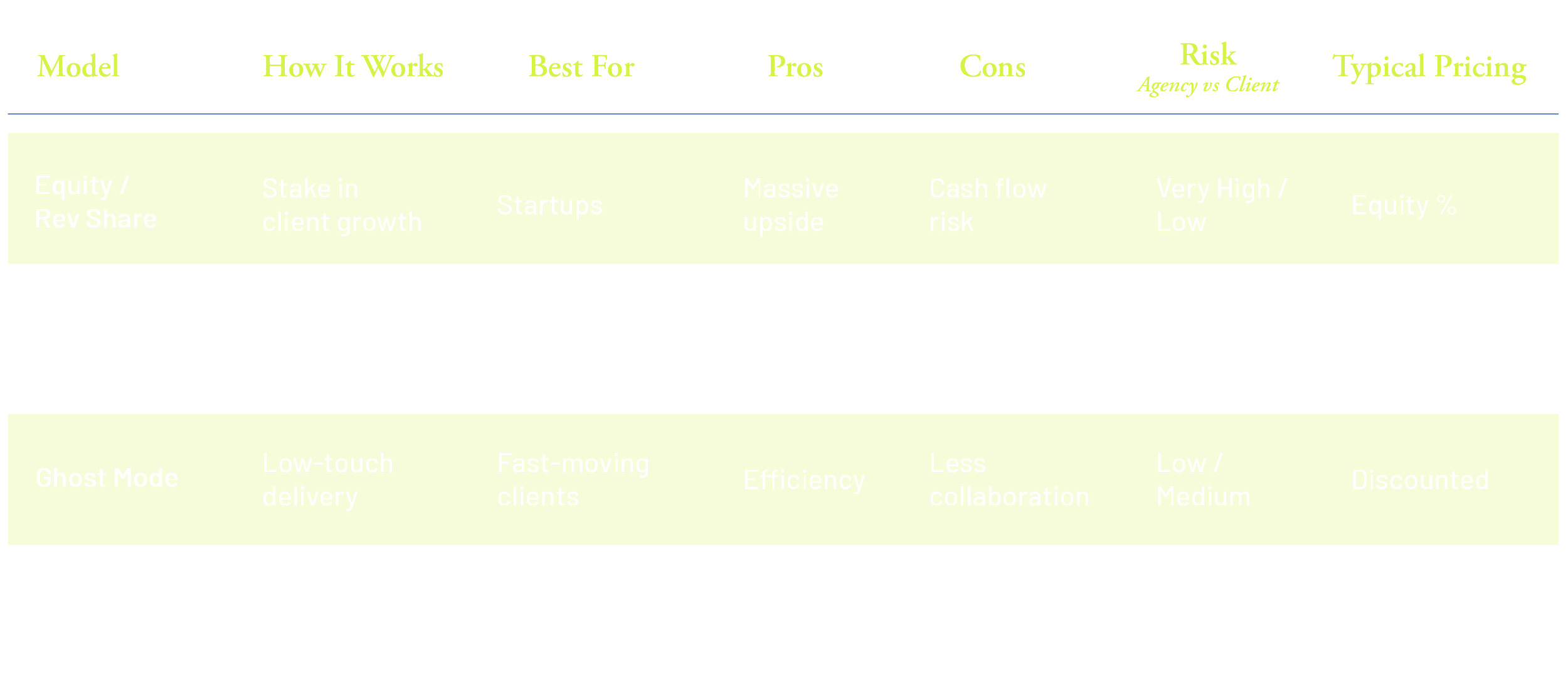Instead of relying on constant pitching or unpredictable projects, they build: recurring income and compounding value.